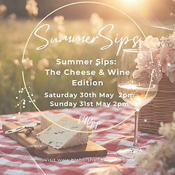 Summer Sips: Cheese & Wine Edition Please arrive no more than 10 mins before your booked time - thank you. Celebrate the start of summer with two special Cheese & Wine Tasting dates at the vineyard. Guests will enjoy eight curated 40ml servings across four of our estate wines, fresh whites, delicate rosé, and a smooth red, each paired with beautiful seasonal cheeses & snacks for a truly satisfying tasting experience. Sparkling wine will be available to purchase on arrival, and we start the afternoon with a short wander through the vines to soak up the season. A light, uplifting way to welcome summer at Blabers Hall! Expect a fresh welcome with lights sparkling, and wine flowing. Upon arrival, guests may choose to enjoy a glass of our Sparkling Wine (optional, not included in the tasting line-up). Cost: £40.00 per person Location: Blabers Hall Wine Estate, Fillongley Experience will last approx. 2 hours Wine Shop: Open after the event for festive purchases and gift ideas Please note: Due to the nature of the pairings, we are unable to offer vegetarian, gluten-free, or nut-free alternatives for this event. Children and Dogs Wine tasting is strictly 18+ (Please note we operate a Challenge 25 policy so please bring photographic ID). Please note dogs are not allowed at this event. Health and Safety Visitors must follow any instructions given by your Tour Guide, and read our Health & Safety procedures which is on display in the Tasting Room & Cellar Door. However, everyone is responsible for their own safety. We do have CCTV in operation at the vineyard. Photos Please take lots of photos! And remember to tag us in any social media posts. Car Parking We have plenty of free parking. Customers are welcome to leave cars overnight for collection the next day. Group Bookings For parties of 16+ please email adele.adams@blabershall.co.uk so we can find a suitable date and book you in. Please note: This experience is not our standard Wine Tasting & Tour (with or without a glass of Fizz). However, gift cards can be redeemed against the value of our Spring Sips: Cheese & Wine Edition at £45, £58, £90, or £116 (depending on your voucher value). A glass of our fizz can be purchased on the day. If paying with a Gift Card please enter the Gift Card number on the Checkout Page under 'Redeem a Gift Card' - Thank you.
